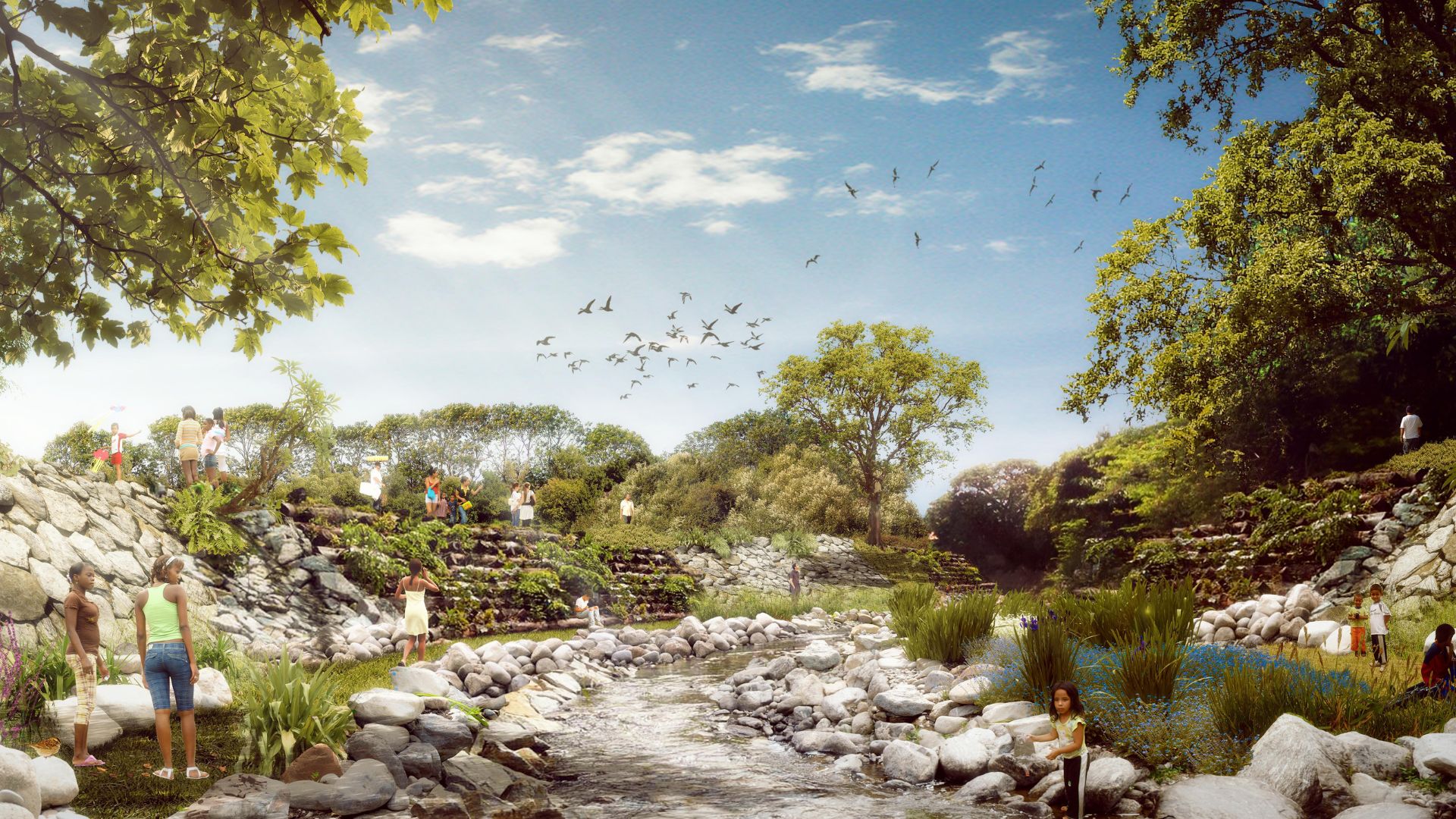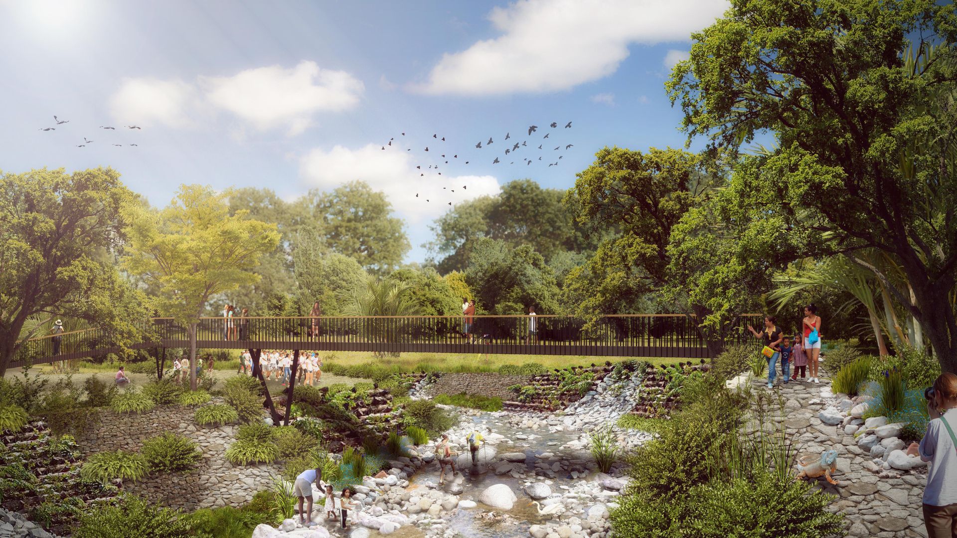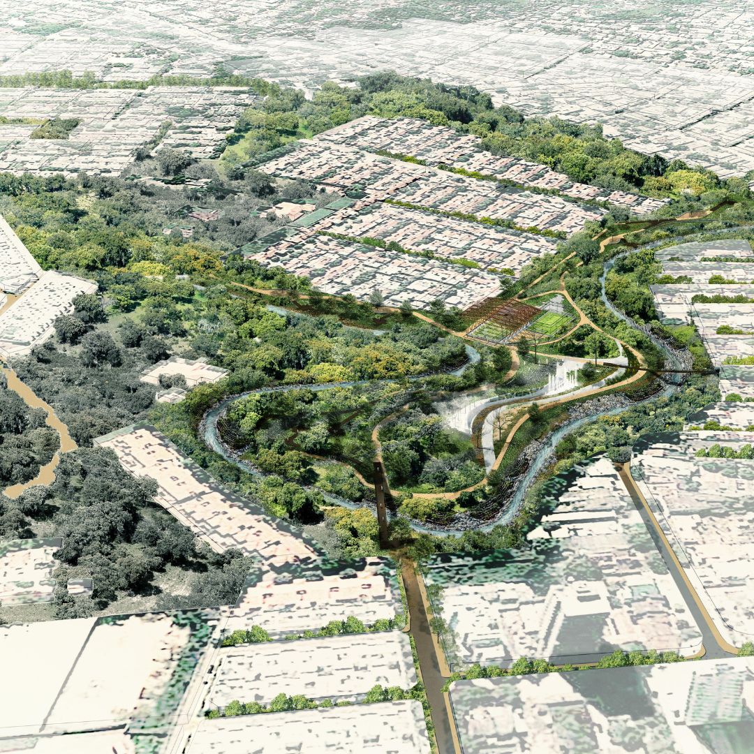 Uno de los proyectos referente de la transformación del Río Manzanares en Santa Marta, con una propuesta de bajo impacto ambiental que permite el cauce natural y sus ciclos de inundación, combinando el entretenimiento barrial con pedagogía.